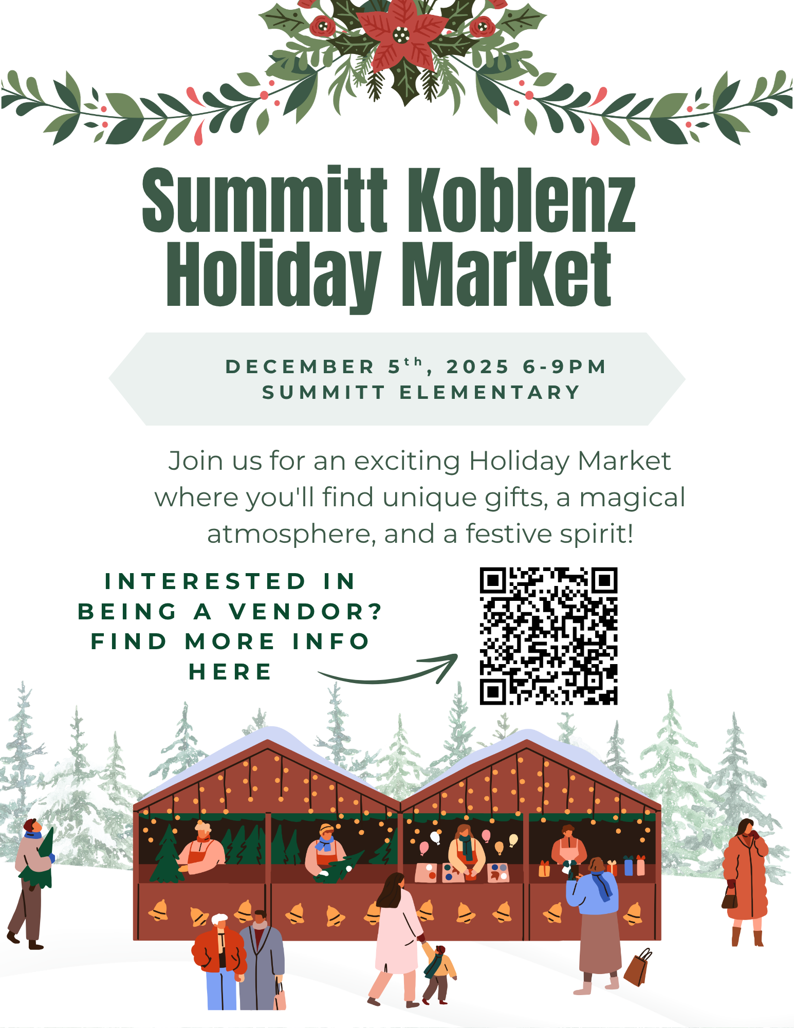 Find attached the flyer HERE that includes the QR code to apply. Also here’s the link to the google form: Koblenz Holiday Market